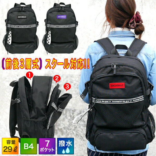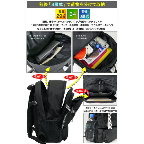 スクールリュック 3層リュック 通学 リュック 撥水 中学生 高校生 大容量 バックパック 男女兼用 [ブラック] [キャンセル・変更・返品不可]