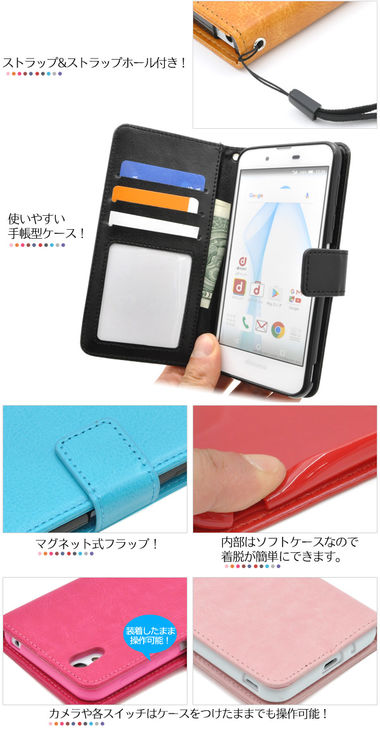 生産地: 中国 成分・材質: 対応機種 AQUOS EVER SH-02J AQUOS U SHV37 Disney mobile DM-01J AQUOS SH-M04/SH-M04-A AQUOS L UQ mobile カラー ホワイト・レッド・ブラック・ライトブルー・ピンク・ビビットピンク・オレンジ・ブルー 素材 合皮(PUレザー)/TPU 注意 ※本製品はマグネットを使用しておりますのでクレジットカードなどの磁気カードの収納は避け、カードの注意事項をよくご確認の上ご使用ください。