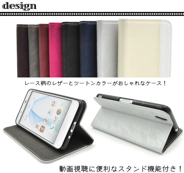<スマホケース>AQUOS EVER SH-02J/AQUOS U SHV37Disney mobile DM-01J/AQUOS SH-M04/SH-M04-AAQUOS L UQ mobile用レースデザインレザーケース グレー 1点【dsh02j-85a】